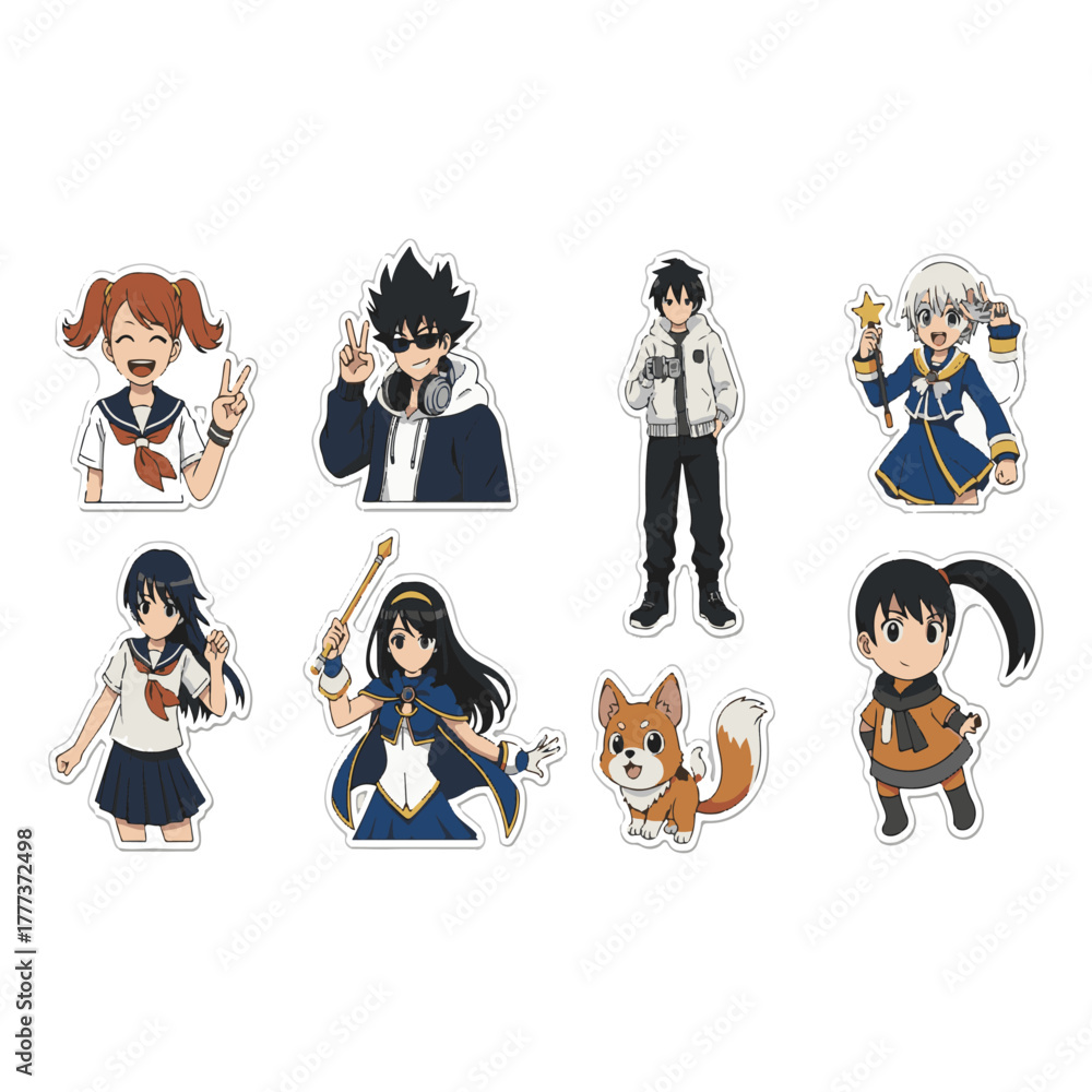 Fotografie Anime & Manga Character Sticker Pack: Students, Mages, Stylish Boy, School Unifo