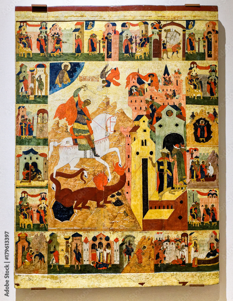 Fotografie Antique Russian orthodox icon, painted on old wooden board