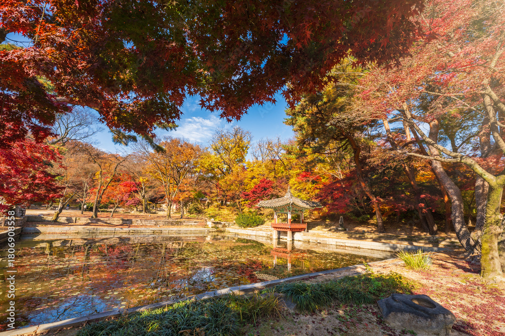Fotografie antumn scenery of juhamun pavilion of secret garden changdeokgung palace seoul s