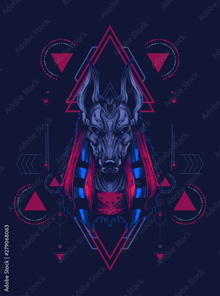 Obraz na plátně anubis head illustration with sacred geometry pattern as the background