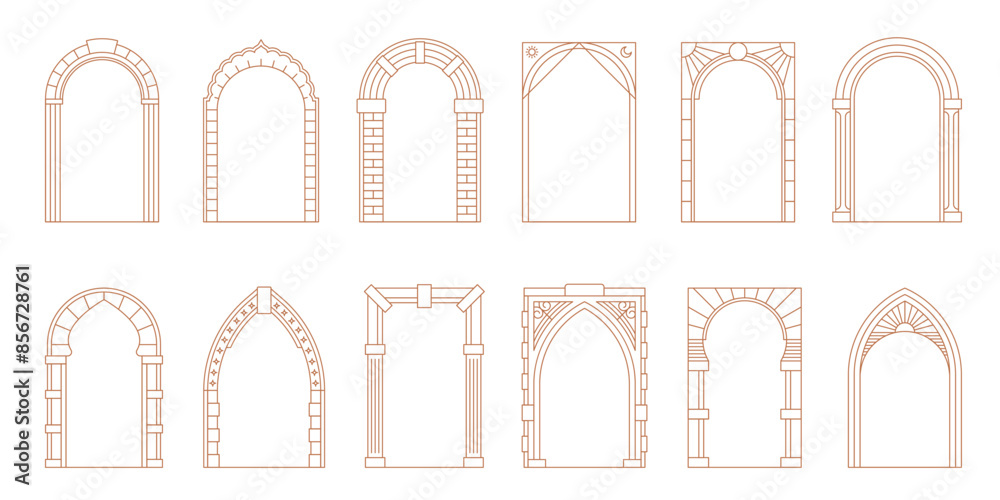 Obraz na plátně Art deco arch window and door frames, entrance doorways and gateway, vector architectural line drawing