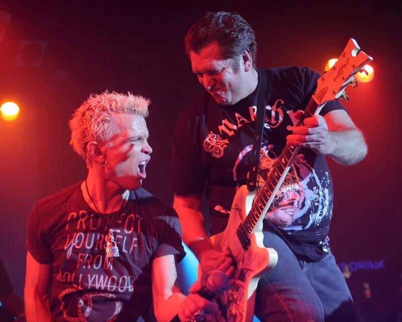 Billy Idol performs at the Roxy in West Hollywood,CA. Sex Pistols founder Steve Jones (right) joins the band on guitar. (Photo by Mike FANOUS/Gamma-Rapho via Getty Images)