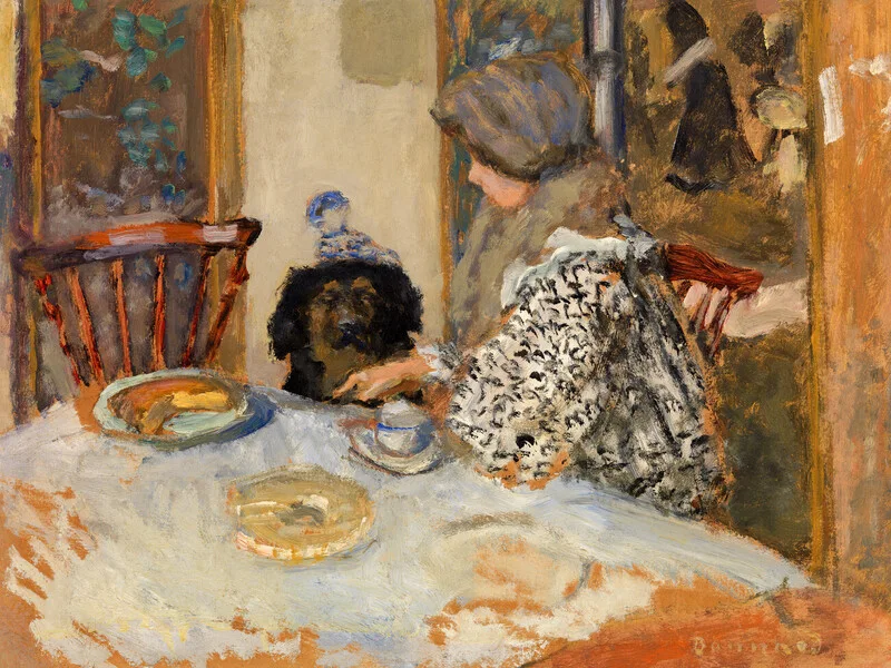 Obraz na plátně A Lady & Her Dog at the Table (Vintage Pating of a Woman & Her Pet) - Pierre Bonnard