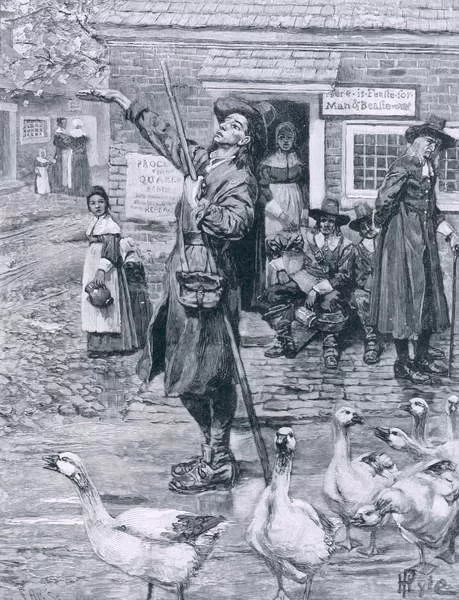 A Quaker Exhorter in New England, illustration from 'The Second Generation of Englishmen in America' by Thomas Wentworth Higginson, pub. in Harper's Magazine, 1883
