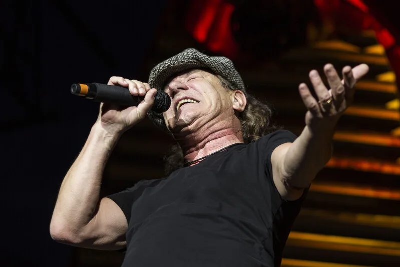 MADRID, SPAIN - MAY 31: Brian Johnson performs on stage at Vicente Calderon stadium on May 31, 2015 in Madrid, Spain. (Photo by Europa Press/Europa Press via Getty Images)