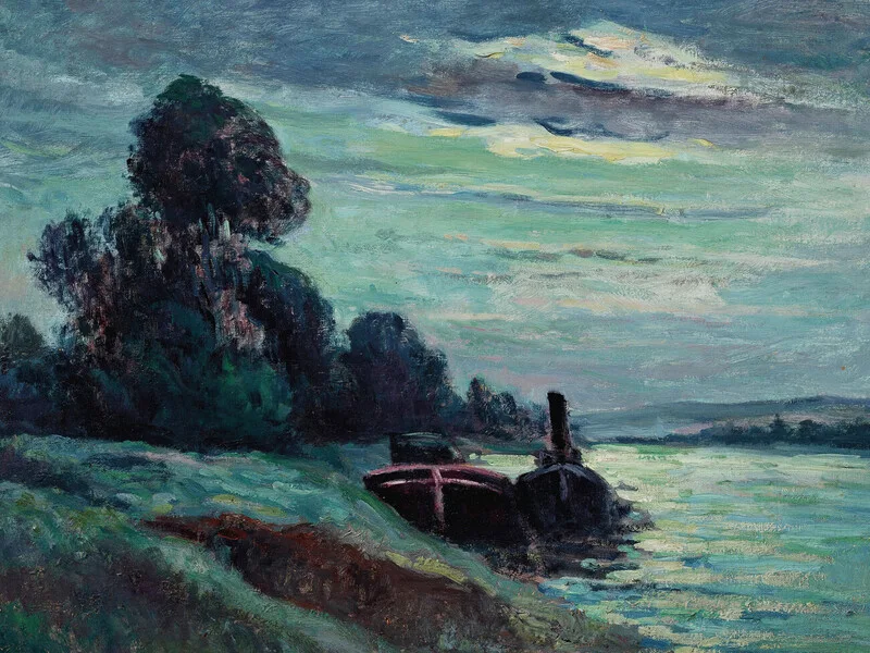 Obraz na plátně Barges on the Seine (Evening Waterside Landscape) - Maximilien Luce