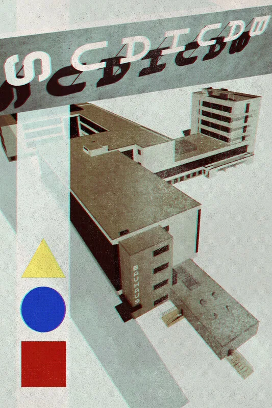 Samolepka Bauhaus Dessau architecture in vintage magazine style III