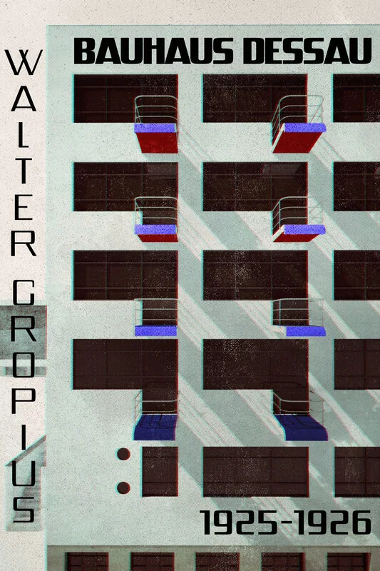 Samolepka Bauhaus Dessau architecture in vintage magazine style IV