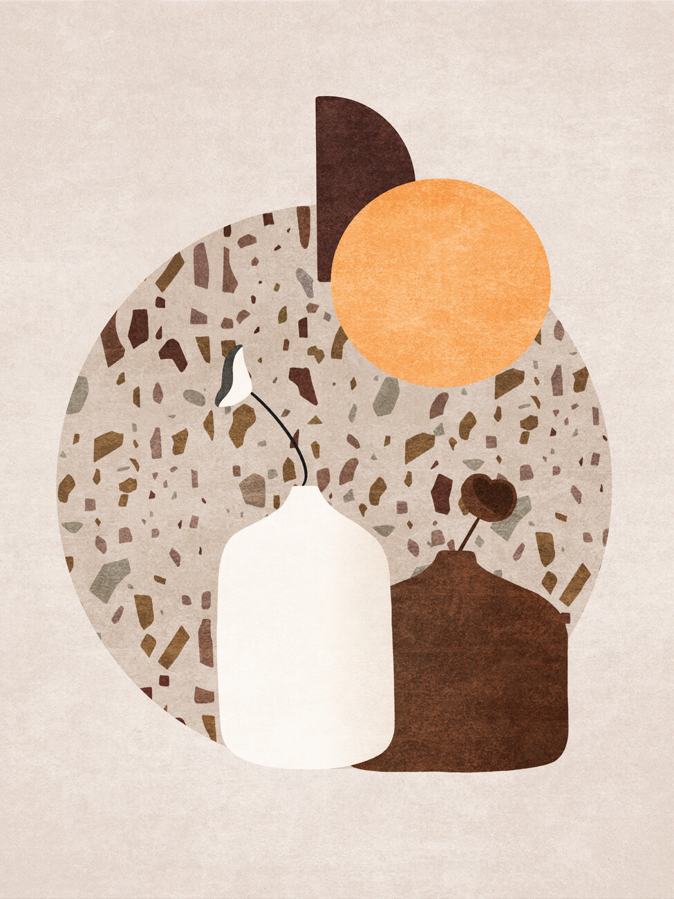 Obraz na plátně Beyaz Ve Kahverengi Saksili Terazzo