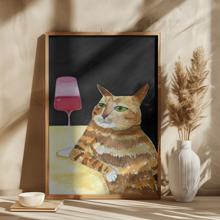 Plakát Cat Friday Night Drinks Wine Funny Cat Humour