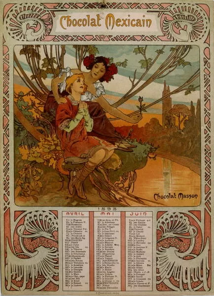 Chocolate Masson calendar illustrated by Mucha . a Czech Art Nouveau painter