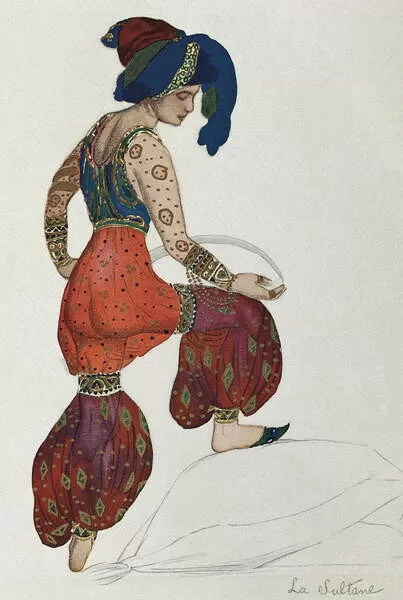 Obraz na plátně Costume of Vaslav Nijinsky or Nijinski (1889-1950) fr the character of the sultane in the ballet Sheherazade 1910