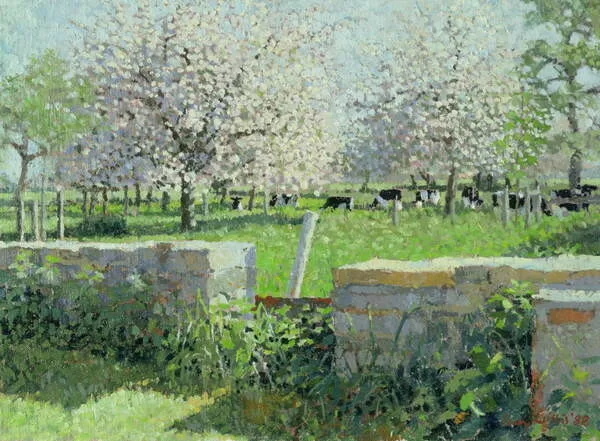 Obraz na plátně Cows in the Orchard, 1988