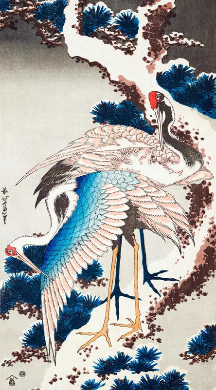 Plakát Cranes on a snowy tree (1834)