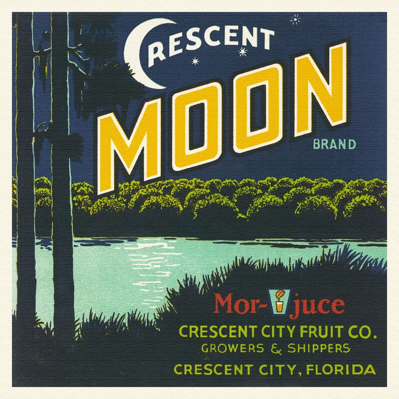Obraz na plátně Crescent Moon Brand (Colourful Retro Graphic / Vintage Fruit & Fresh Produce Advertisement) - Florida Crate Labels