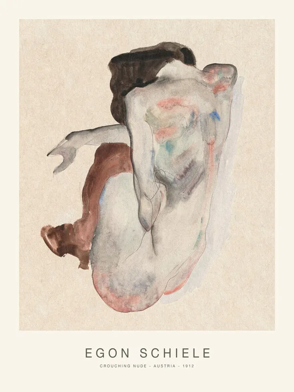 Samolepka Crouching Nude (Vintage Female Nude / Naked Lady) - Egon Schiele