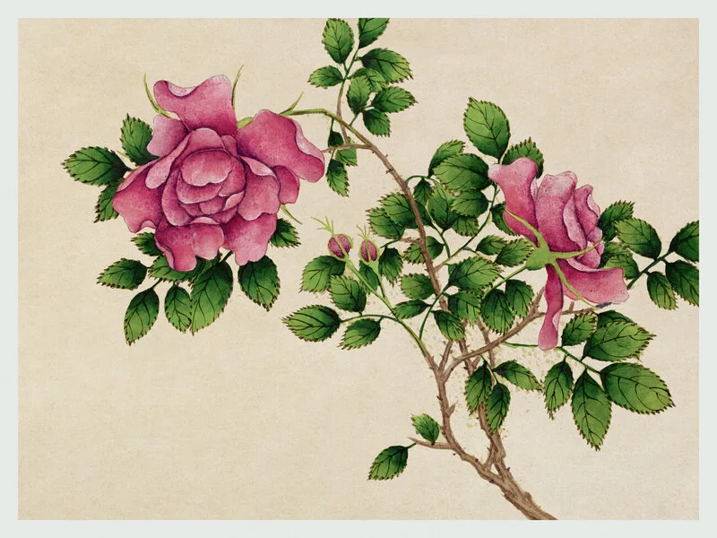 Obraz na plátně Deep Pink Roses (Asian Floral) - Zhang Ruoai