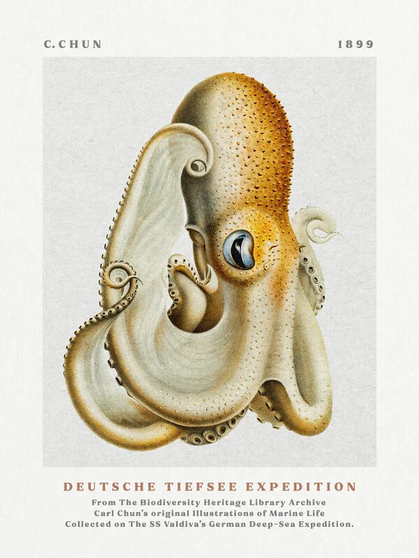 Plakát Deutsche Tiefsee Expedition Poster No.1 (Vintage Octopus) - Carl Chun
