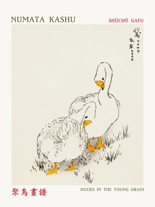 Obraz na plátně Ducks in the Young Grass (Asian Birds) - Numata Kashu