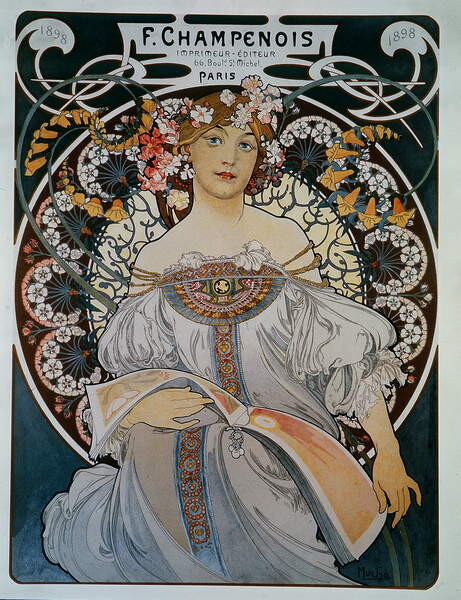 Advertising for the printer-publisher F. Champenois - by Mucha, 1898.