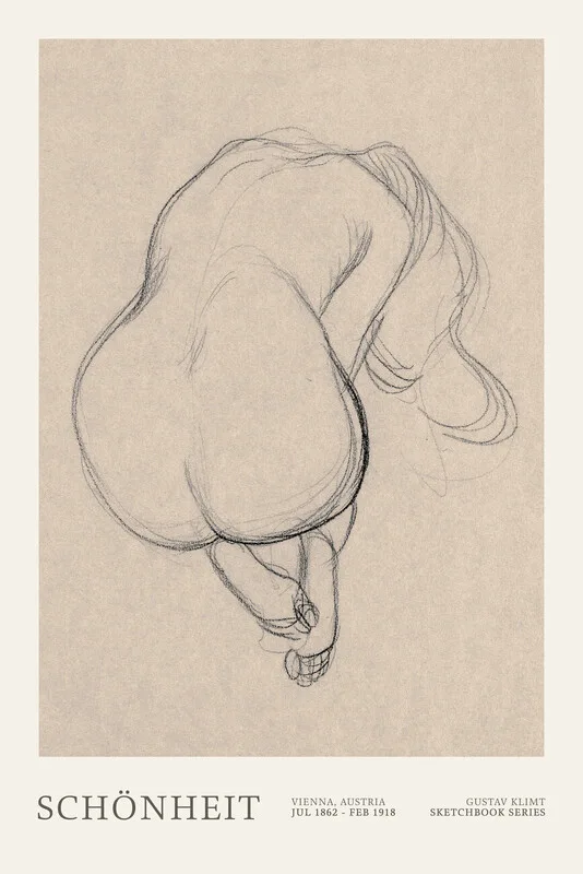 Obraz na plátně Female Nude Pair No.1 (Bum Drawing / Sketch) - Gustav Klimt