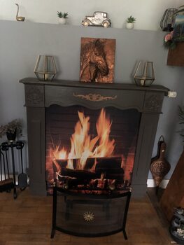 Samolepka Fireplace burning wood logs, cozy warm home christmas time