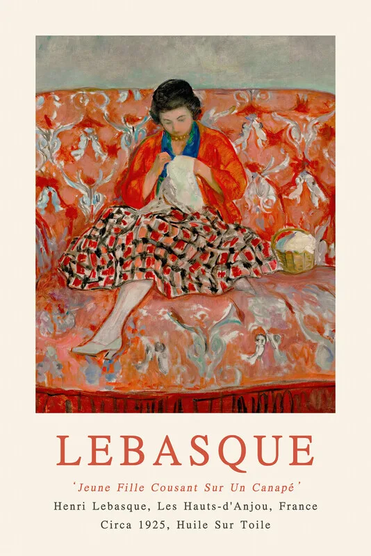 Samolepka Girl on a Red Sofa (French Female Portrait) - Henri Lebasque