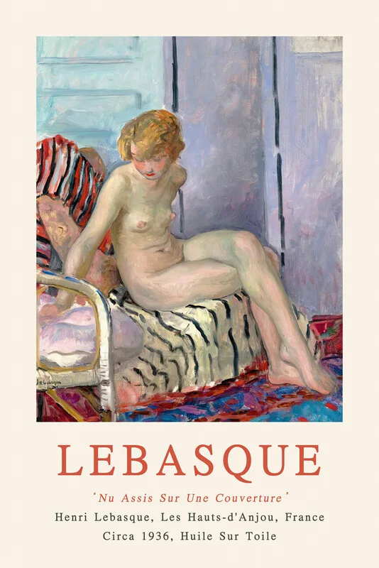 Samolepka Girl on a Stripy Cover (French Female Nude) - Henri Lebasque