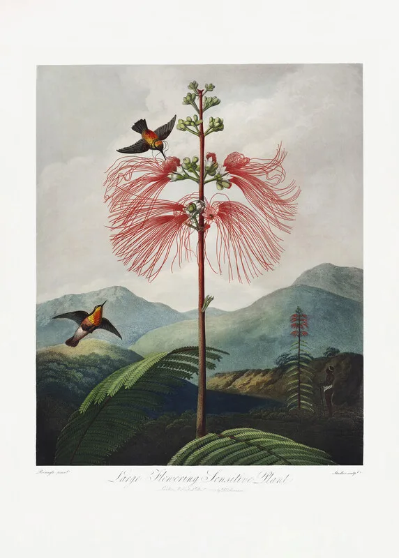 Plakát Largea€“Flowering Sensitive Plant from The Temple of Flora (1807)