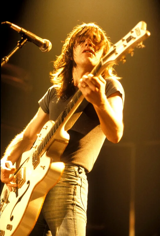BOSTON, MA - OCTOBER 1980: Malcolm Young of AC/DC performing at The Orpheum Theater, Boston, MA, October 9, 1980 (Ron Pownall/Getty Images)