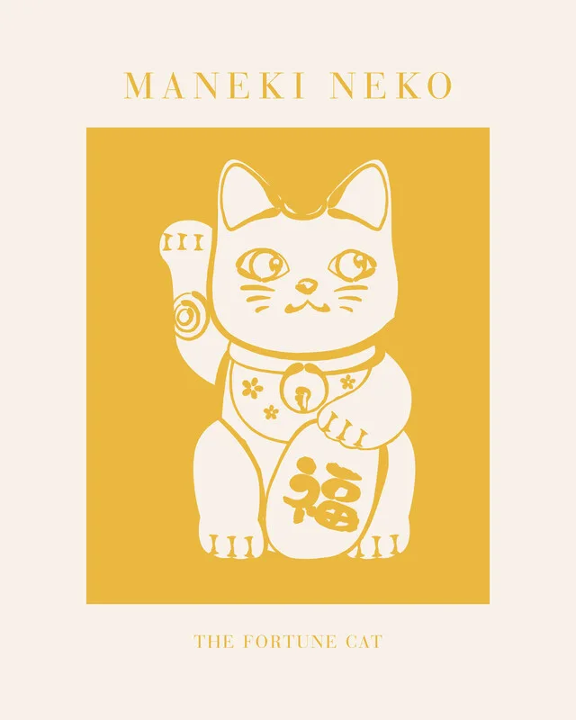 Samolepka Maneki-Neko Yellow Cat