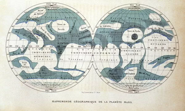 Map of the Planet Mars - in “” Popular Astronomy”” by Camille Flammarion, ed. Marpon & Flammarion, 1884