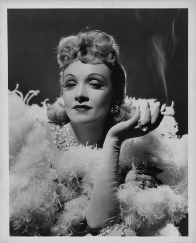 Portrait of actress Marlene Dietrich, wearing feather and holding a cigarette, circa 1935. (Photo by Archive Photos/Moviepix/Getty Images)
