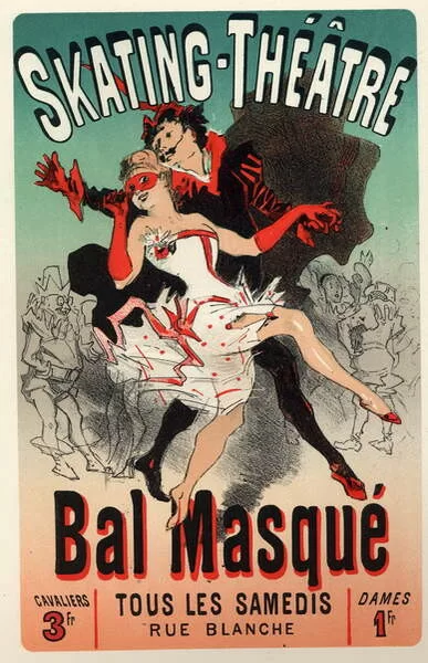 Entertainment. Theatre. Masquerade Ball at the Skating Theatre, Paris. Poster by Jules Cheret, France, c.1875