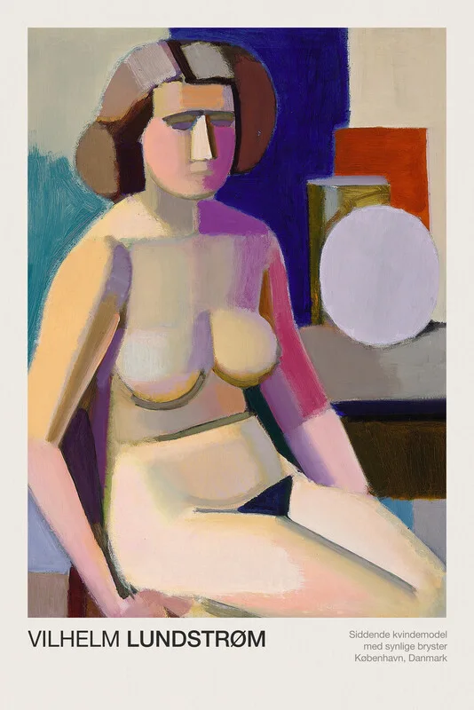 Plakát Nude Sitting Female Model with Exposed Breasts (Naked Lady Painting) - Vilhelm Lundstrøm