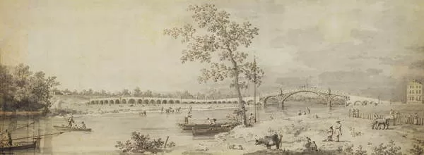 Old Walton Bridge seen from the Middlesex Shore, 1755