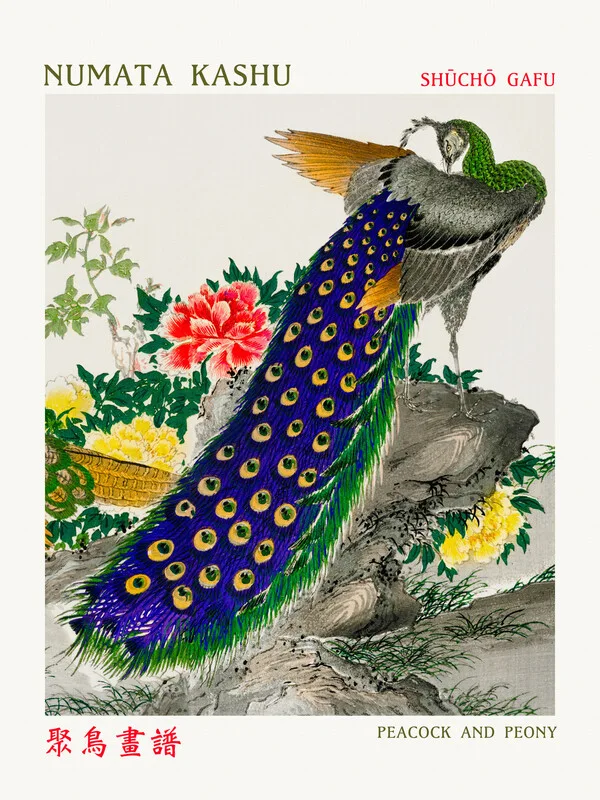 Samolepka Peacock & Peony (Asian Birds) - Numata Kashu