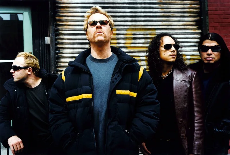 UNSPECIFIED - APRIL 01: Photo of METALLICA and Lars ULRICH and James HETFIELD and Kirk HAMMETT and Robert TRUJILLO; Posed group portrait L-R Lars Ulrich, James Hetfield, Kirk Hammett and Robert Trujillo, sunglasses - 377 (Photo by Mick Hutson/Redferns)