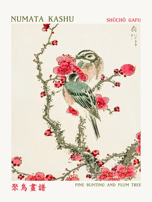 Plakát Pine Bunting & Plum Tree (Asian Birds) - Numata Kashu