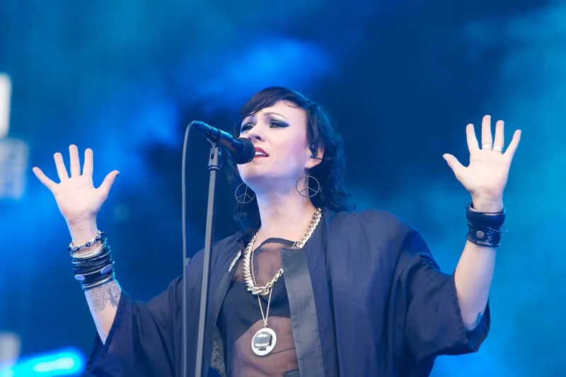 SEINAJOKI, FINLAND - JUNE 14: Mira Luoti of Pmmp performs on stage on Day 1 of Provinssirock 2013 on June 14, 2013 in Seinajoki, Finland. (Photo by Ragnar Singsaas/Redferns via Getty Images)