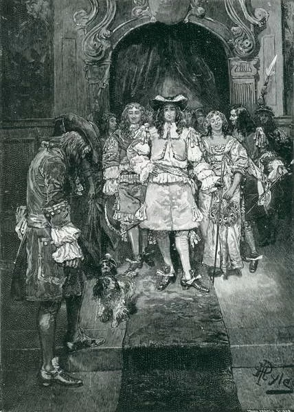 Quaker and King at Whitehall, engraved by Frank French illustration