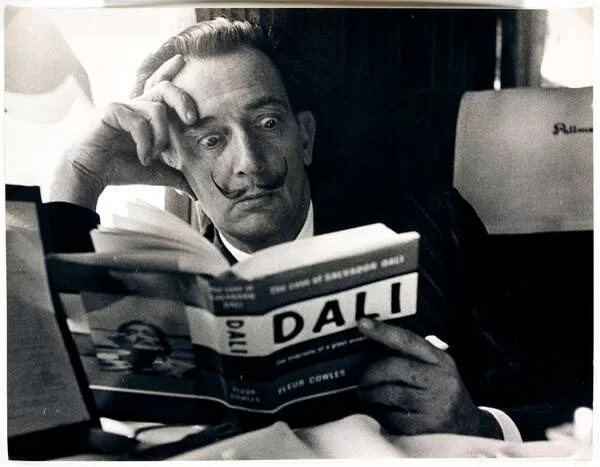 Samolepka Salvador Dali reading his biography, 6 May, 1959