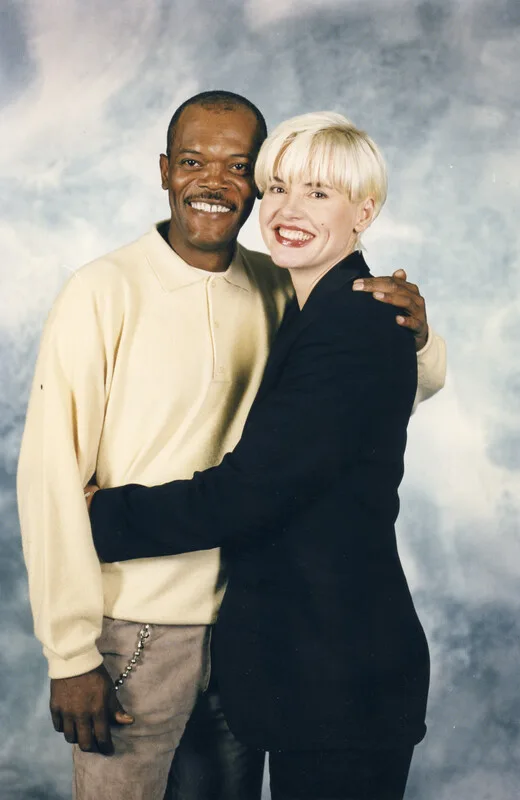 Portrait en studio des acteurs Samuel L. Jackson et Geena Davis , 25 novembre 1996, Paris, France. (Photo by Alexis DUCLOS/Gamma-Rapho via Getty Images)
