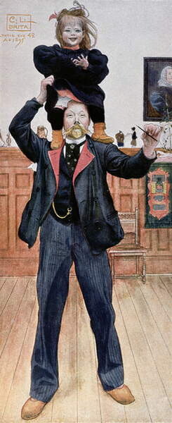 Plakát Self portrait of the artist with his daughter, Brita, 1899