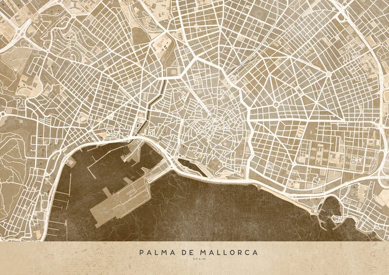 Obraz na plátně Sepia vintage map of Palma de Mallorca