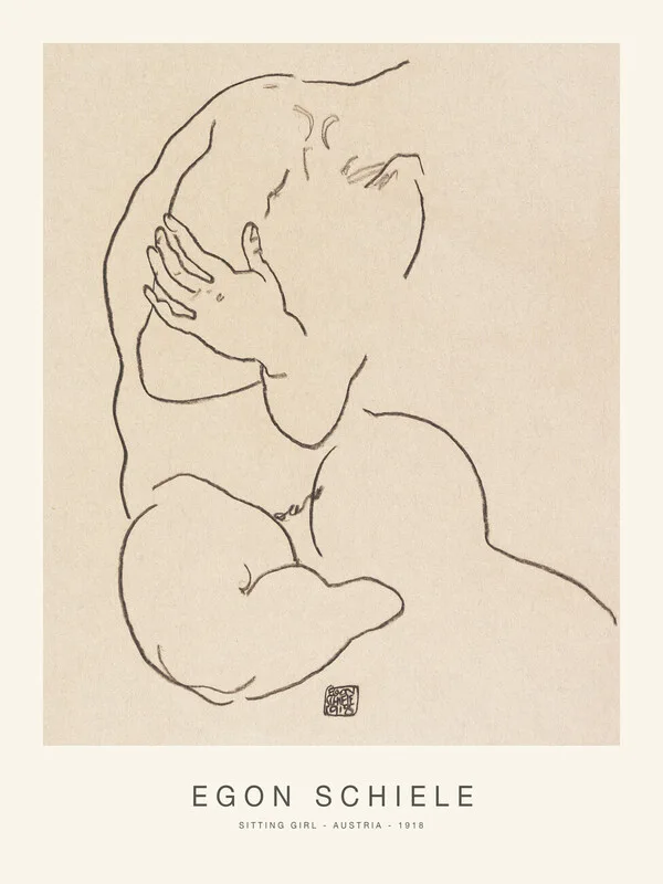 Obraz na plátně Sitting Girl / Female Nude (Special Edition Erotic Sketch) - Egon Schiele