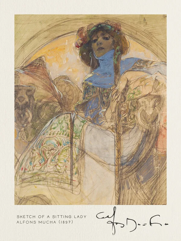 Obraz na plátně Sketch of a Sitting Lady - Alfons Mucha