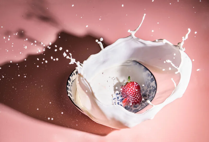 Plakát Strawberry fall into the milk trap