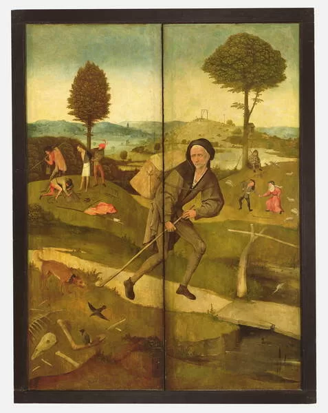 Samolepka The Haywain, with panels closed showing Everyman walking the Path of Life