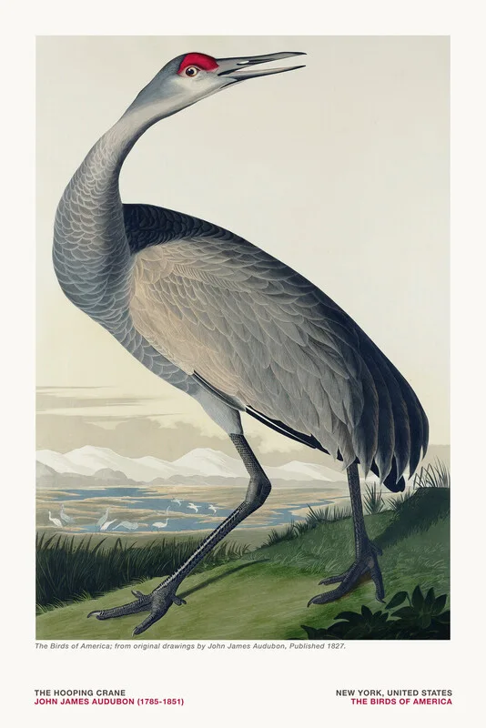 Plakát The Hooping Crane from The Birds of America - J. J. Audubon